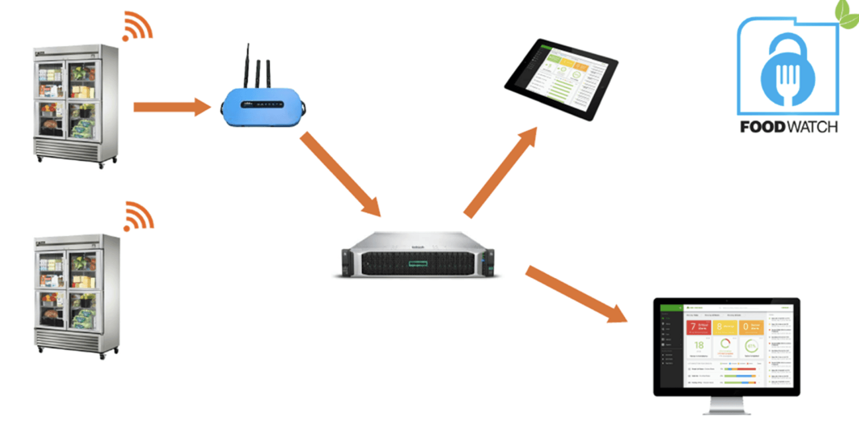Food watch & Businesses know when tempratures are out of range, and the problem can be corrected immedietly